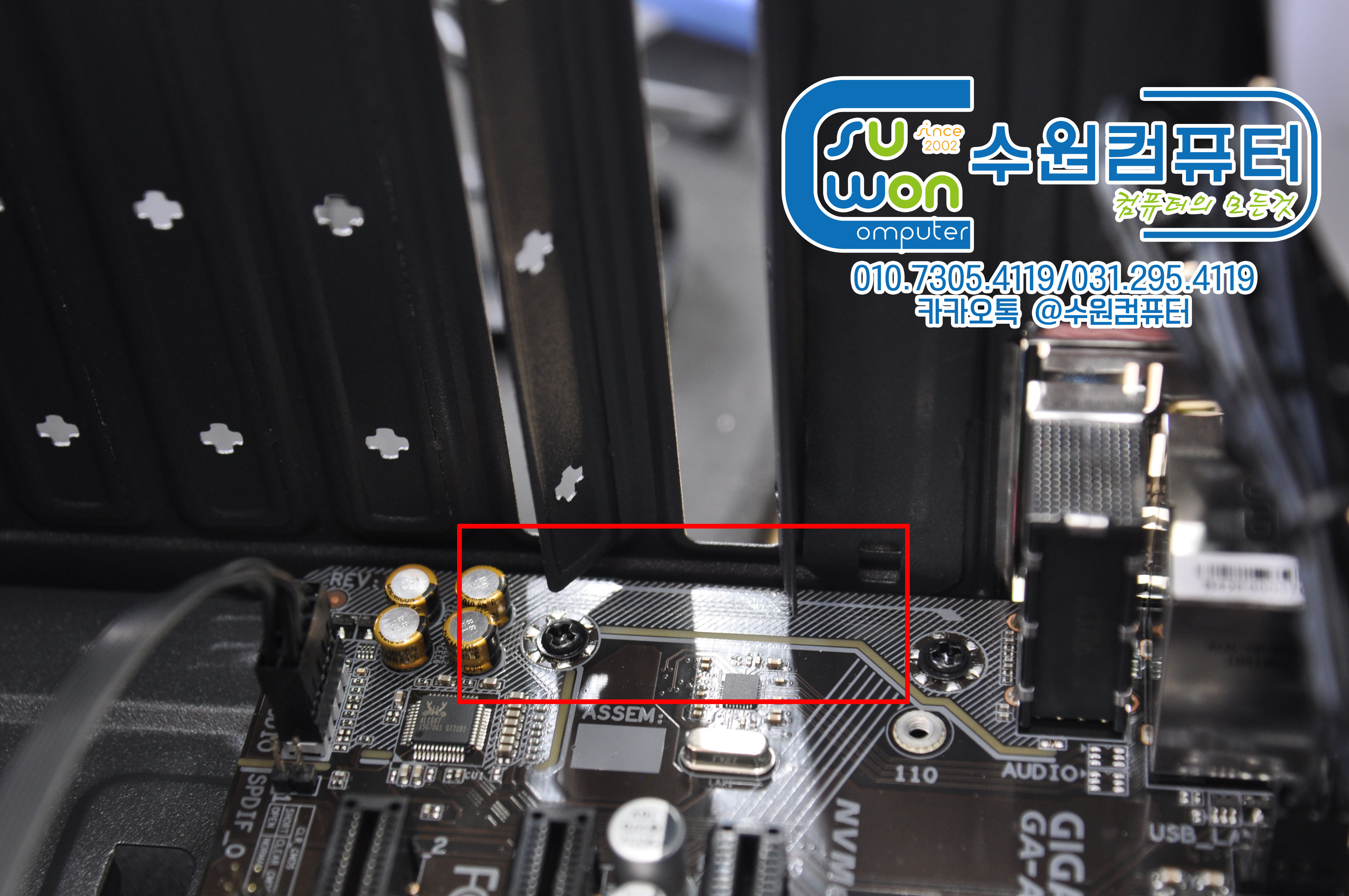 메인보드 장착후 후면 가이드 부분도 다시한번 체크
