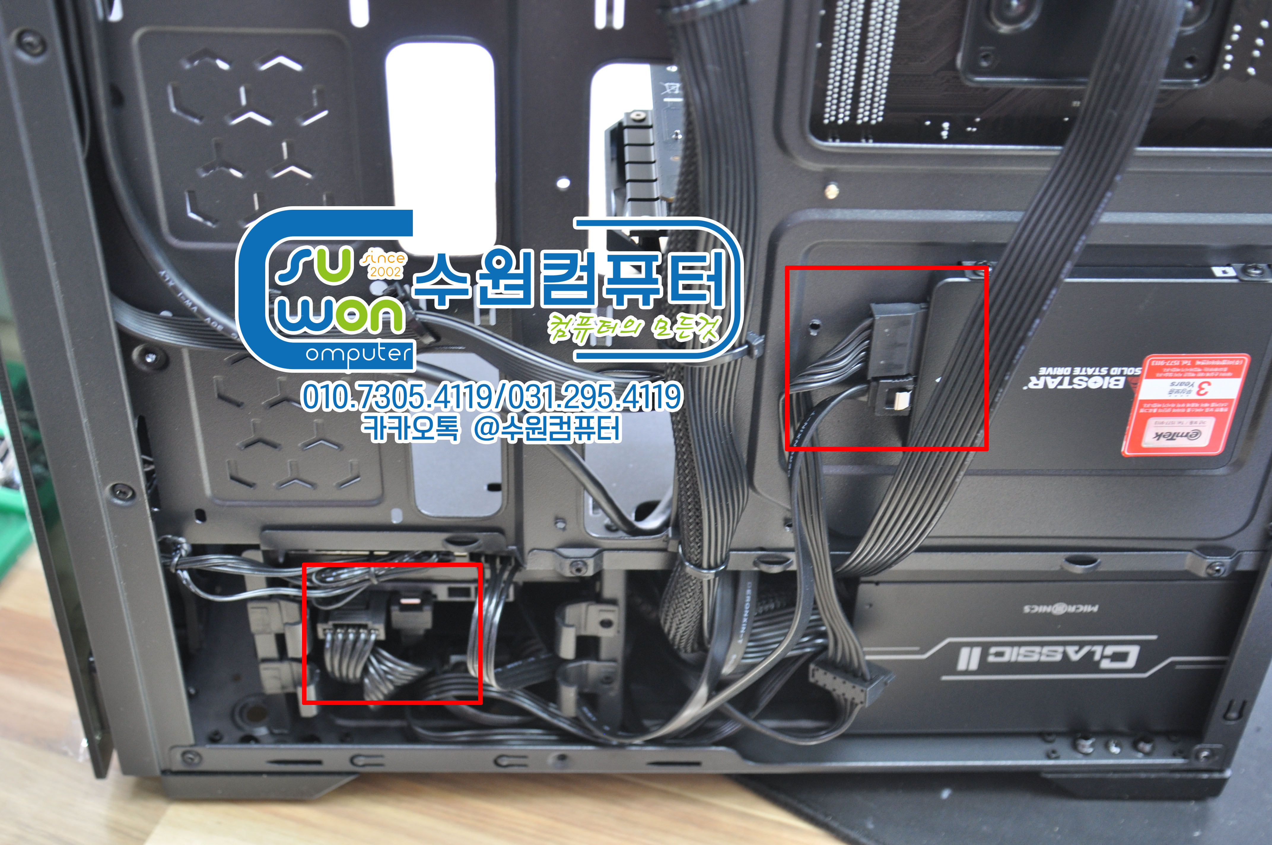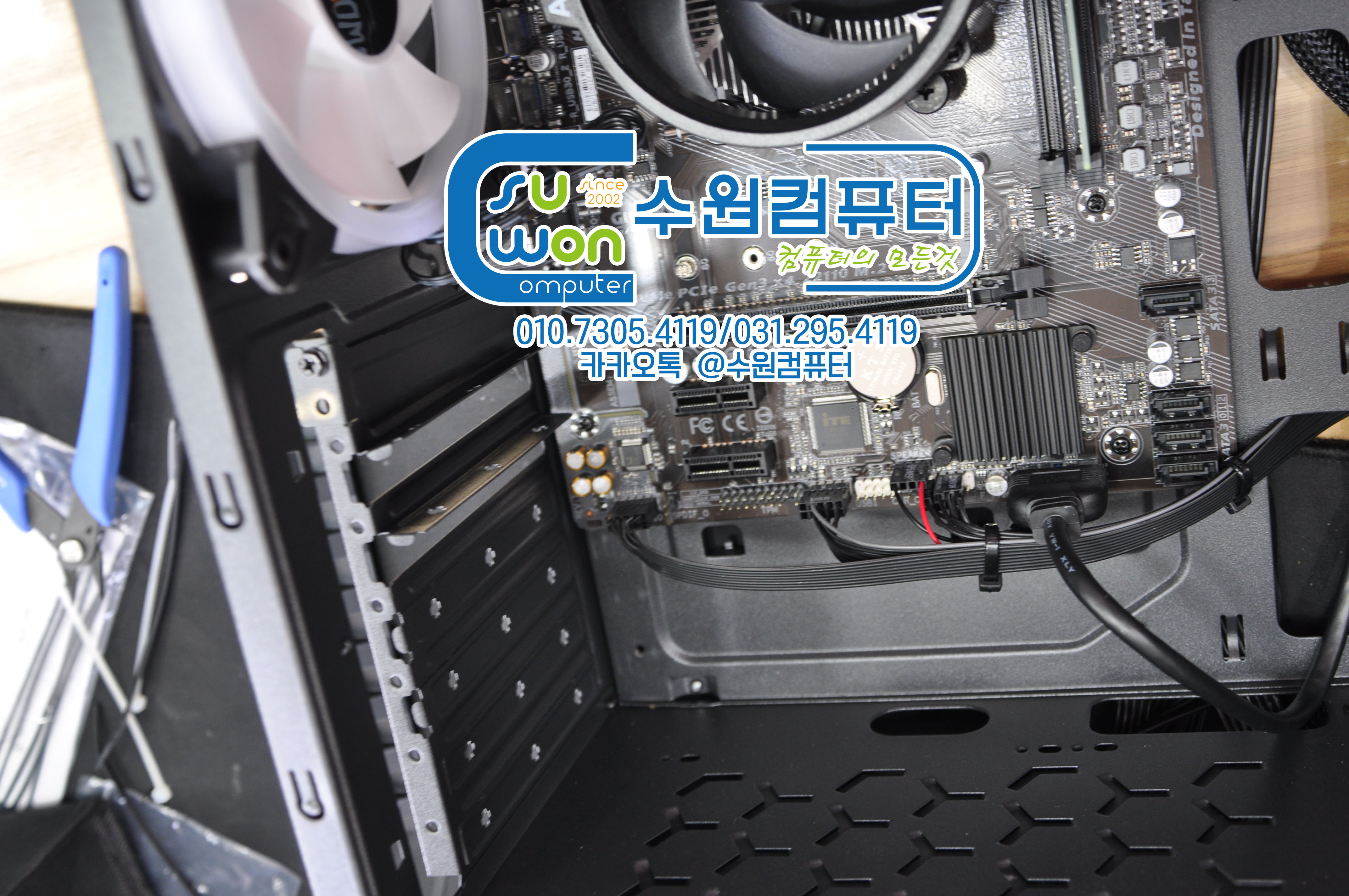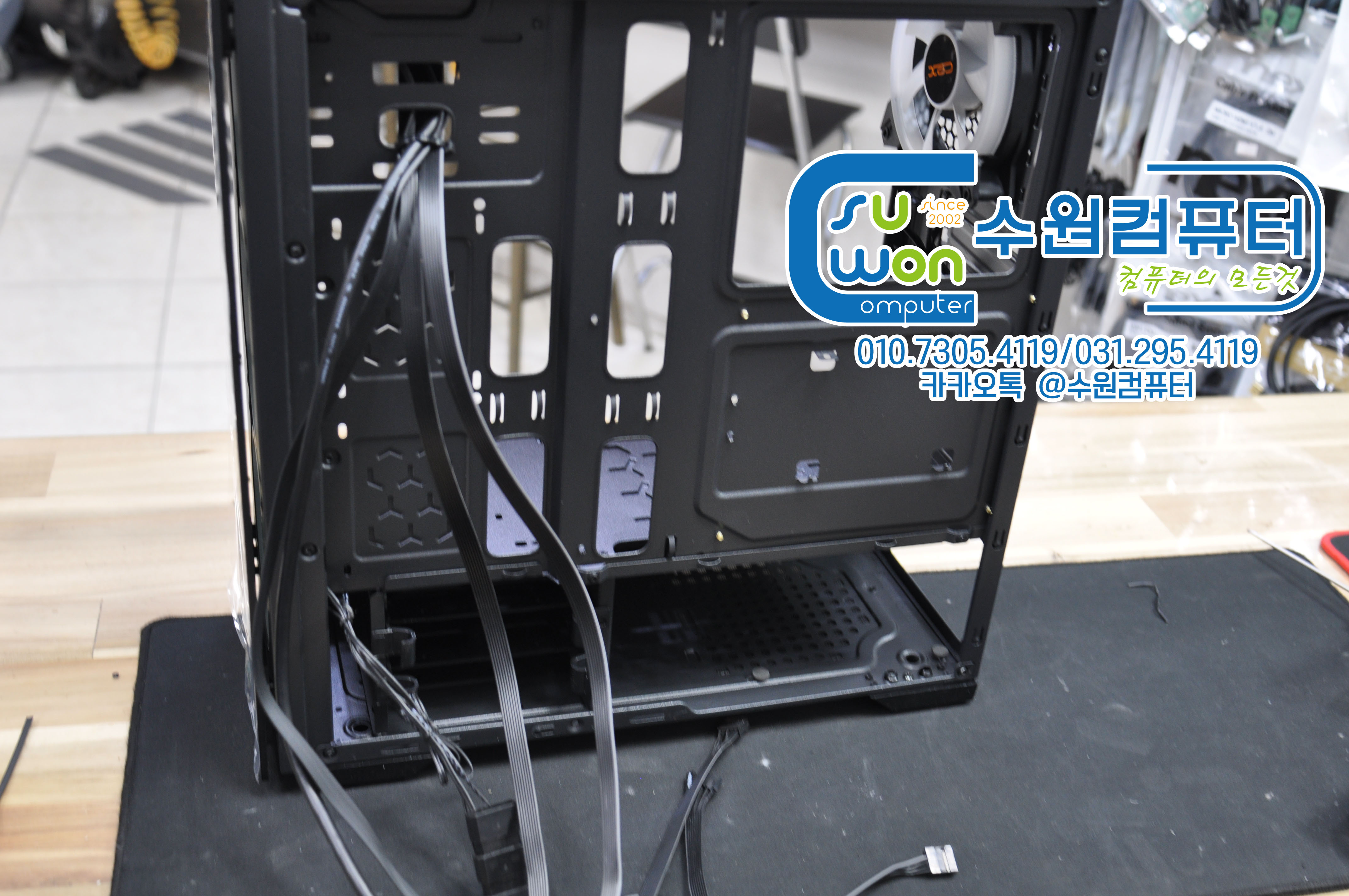 전면쿨러 전원연결 후 케이블 한번더 정리해 주고