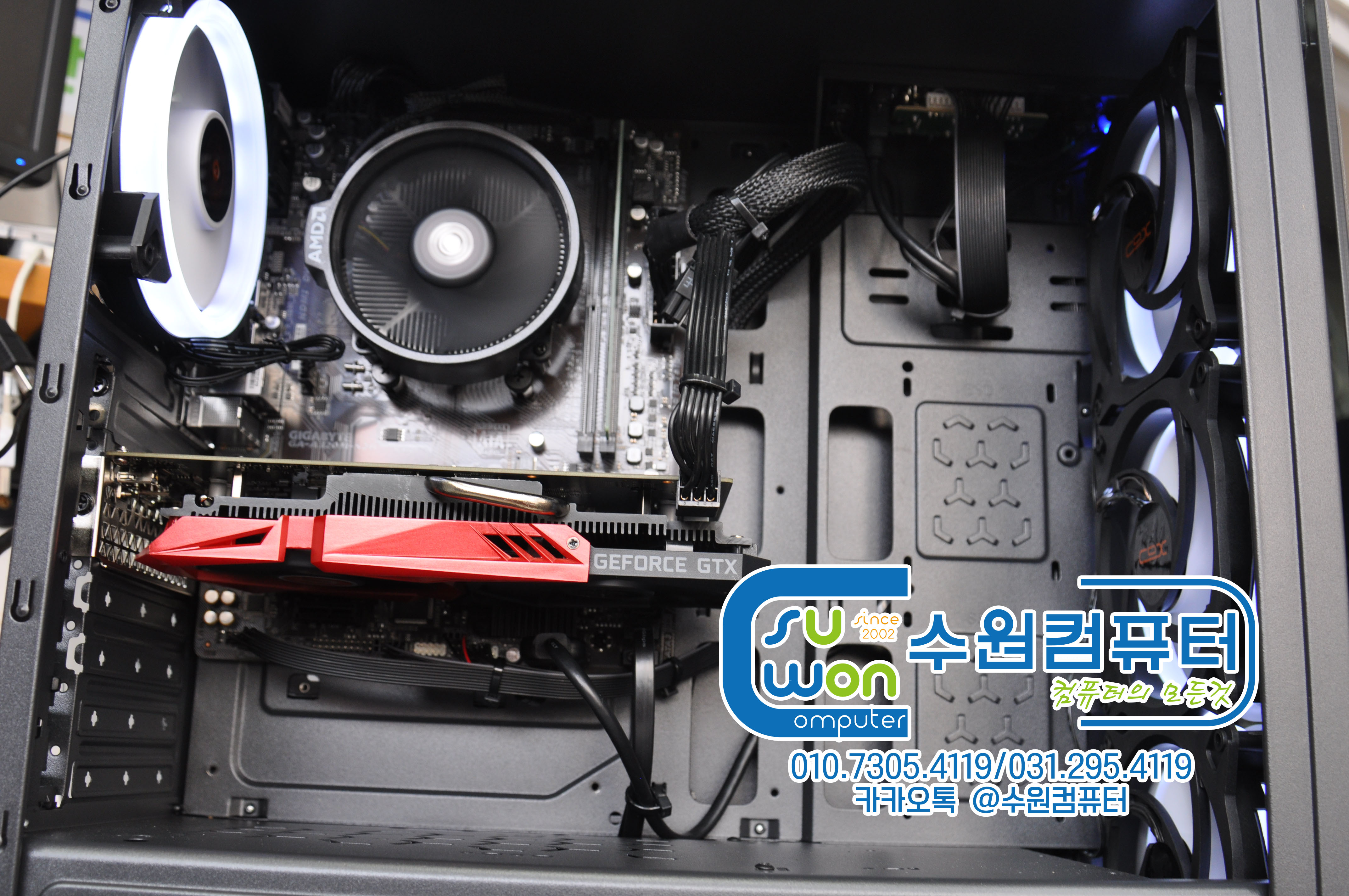 본체케이스 전면 쿨러3개 후면1개 기본제공 됩니다