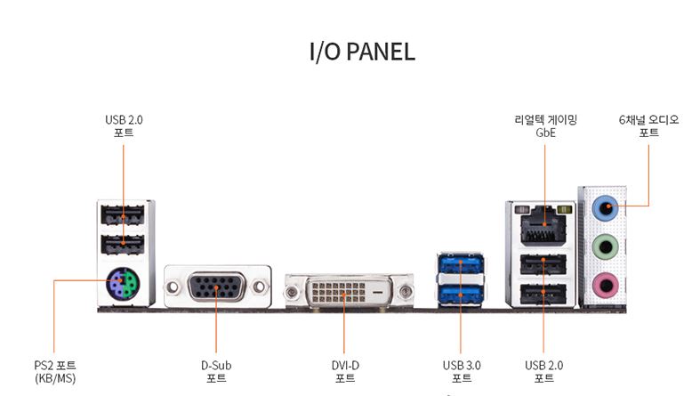 후면 패널 지원하는 포트를 보시면