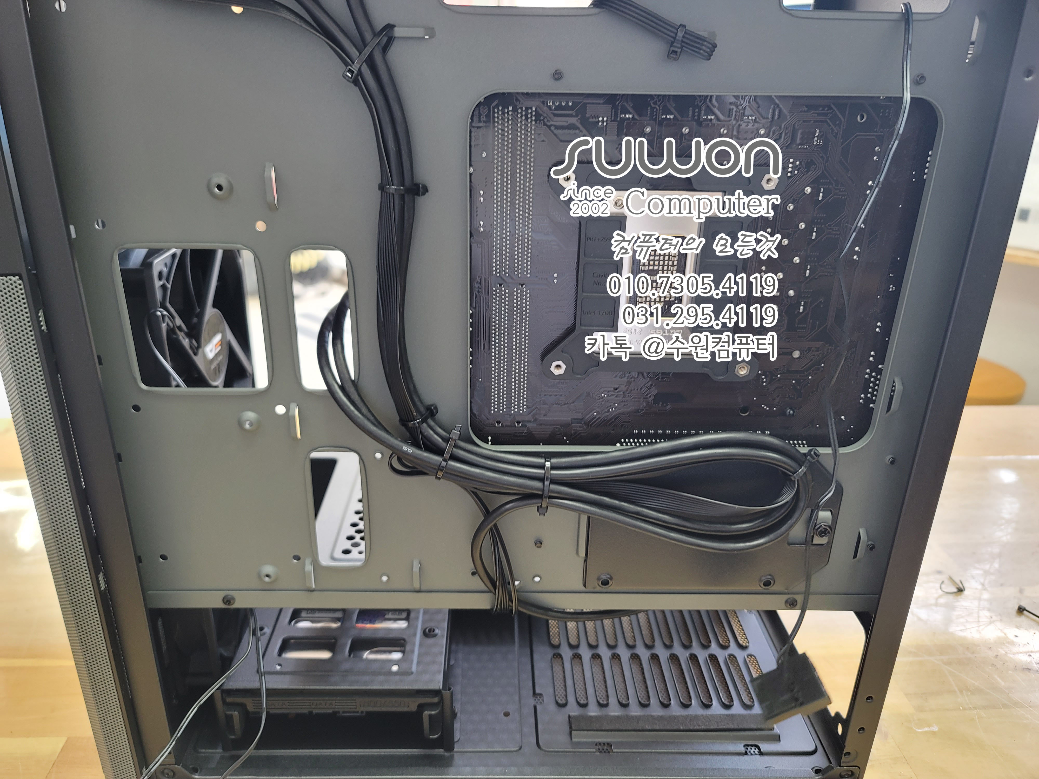 메인보드 장착후 후면부 케이블 대략적으로 정리를 해 줍니다