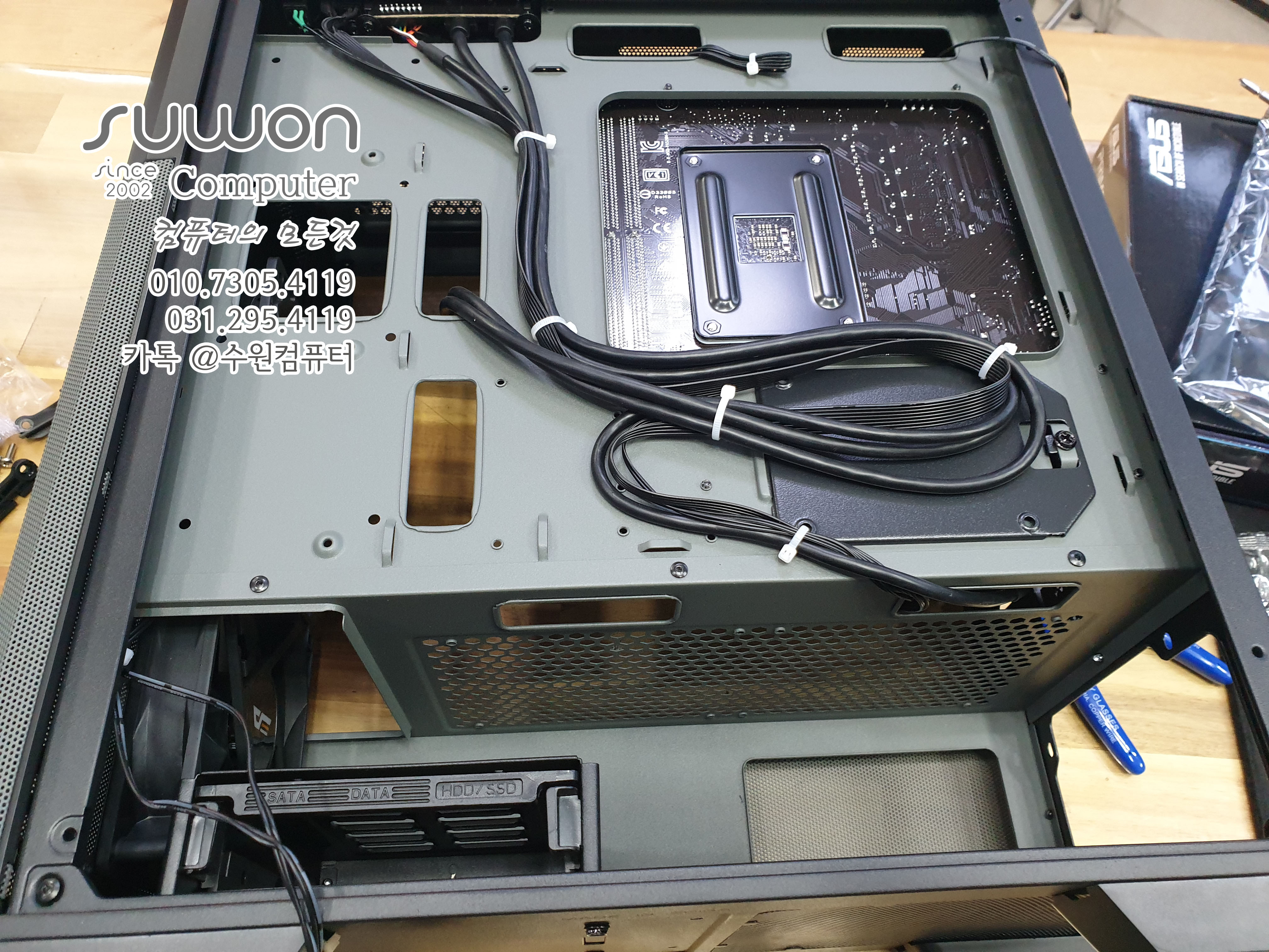 메인보드 장착후 측후면부 케이블 정리하고
