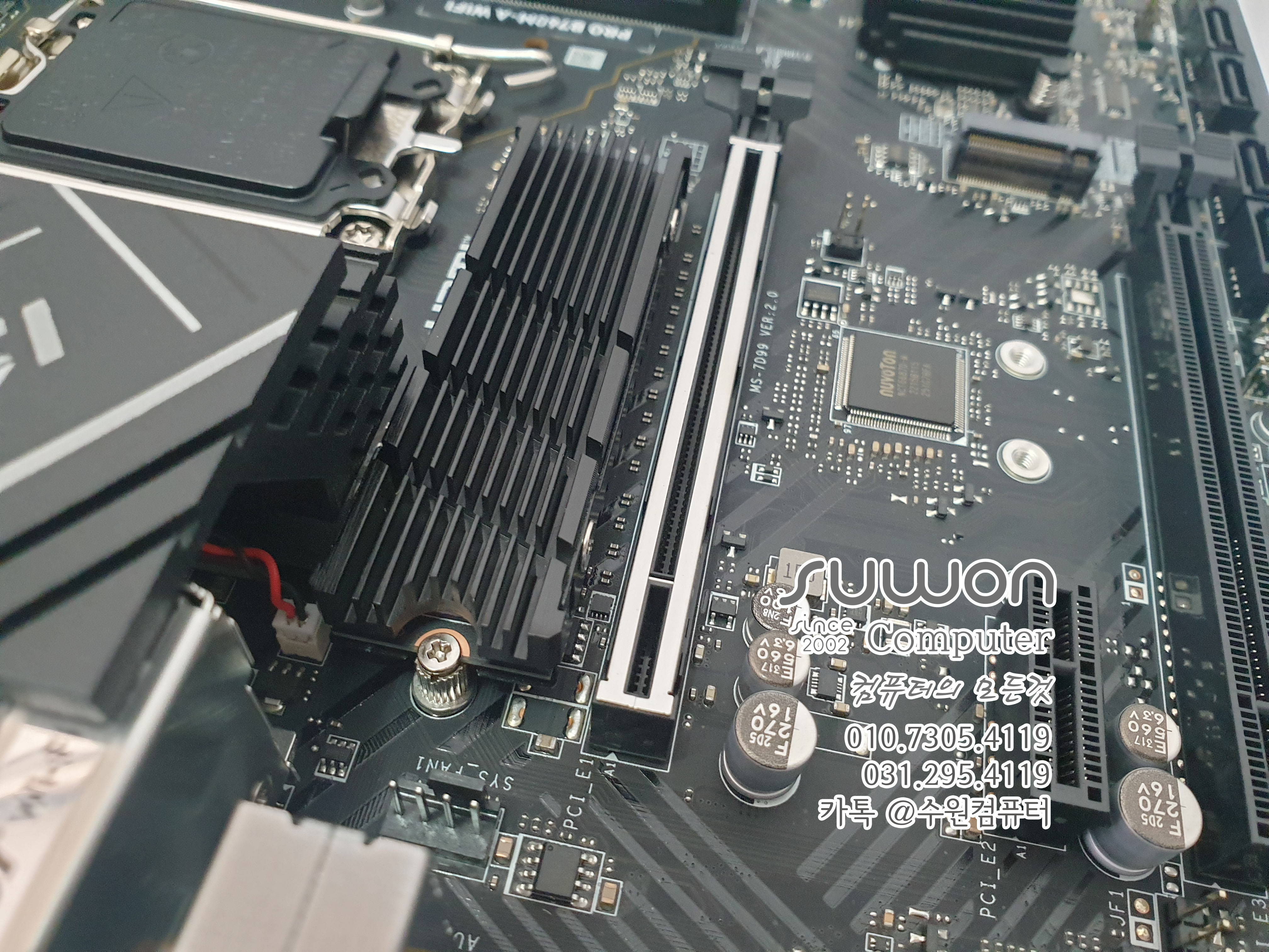메인보드에 SSD 방열판이 없어서 SSD 방열판 별도로 장착해 드렸습니다