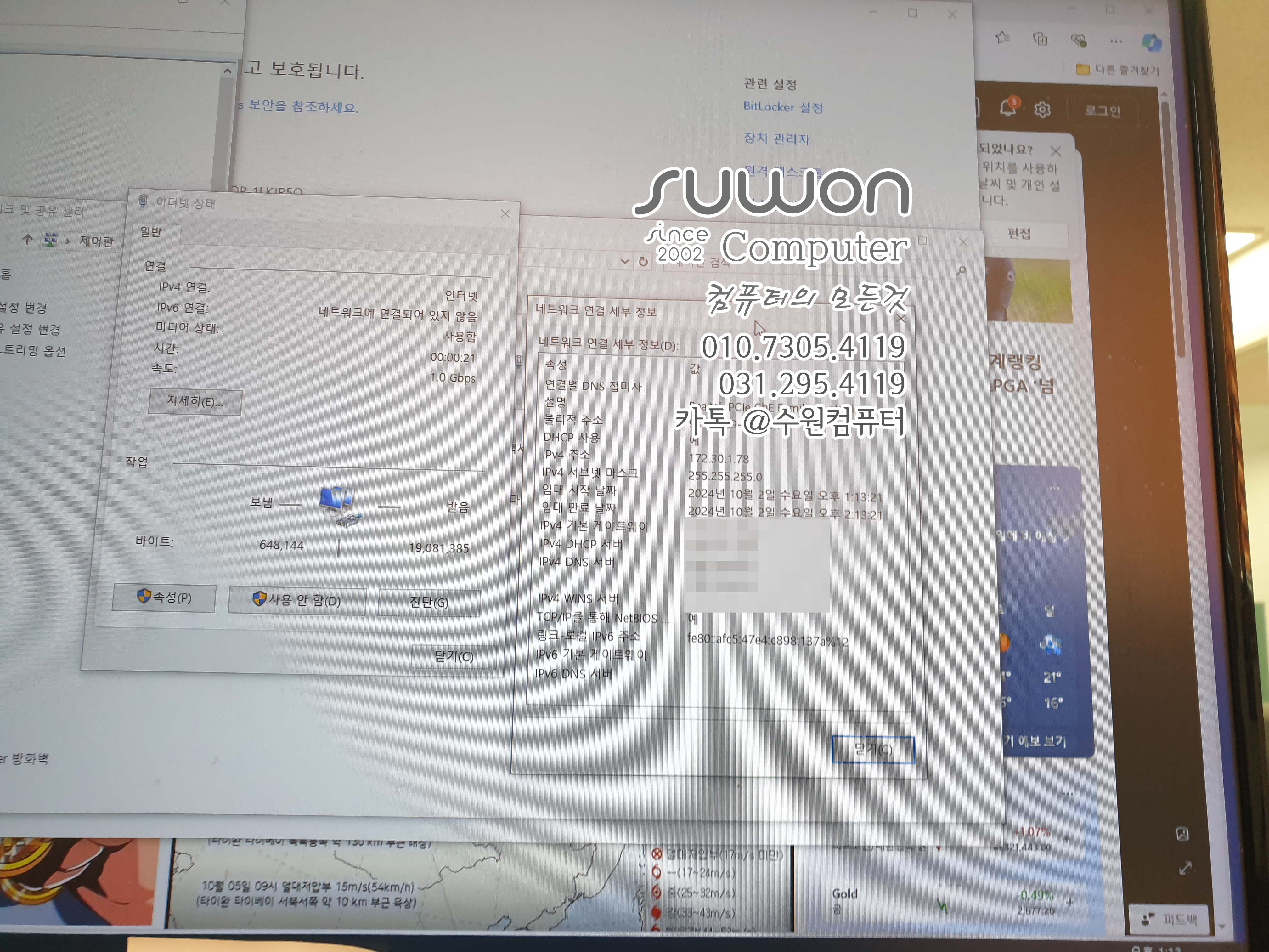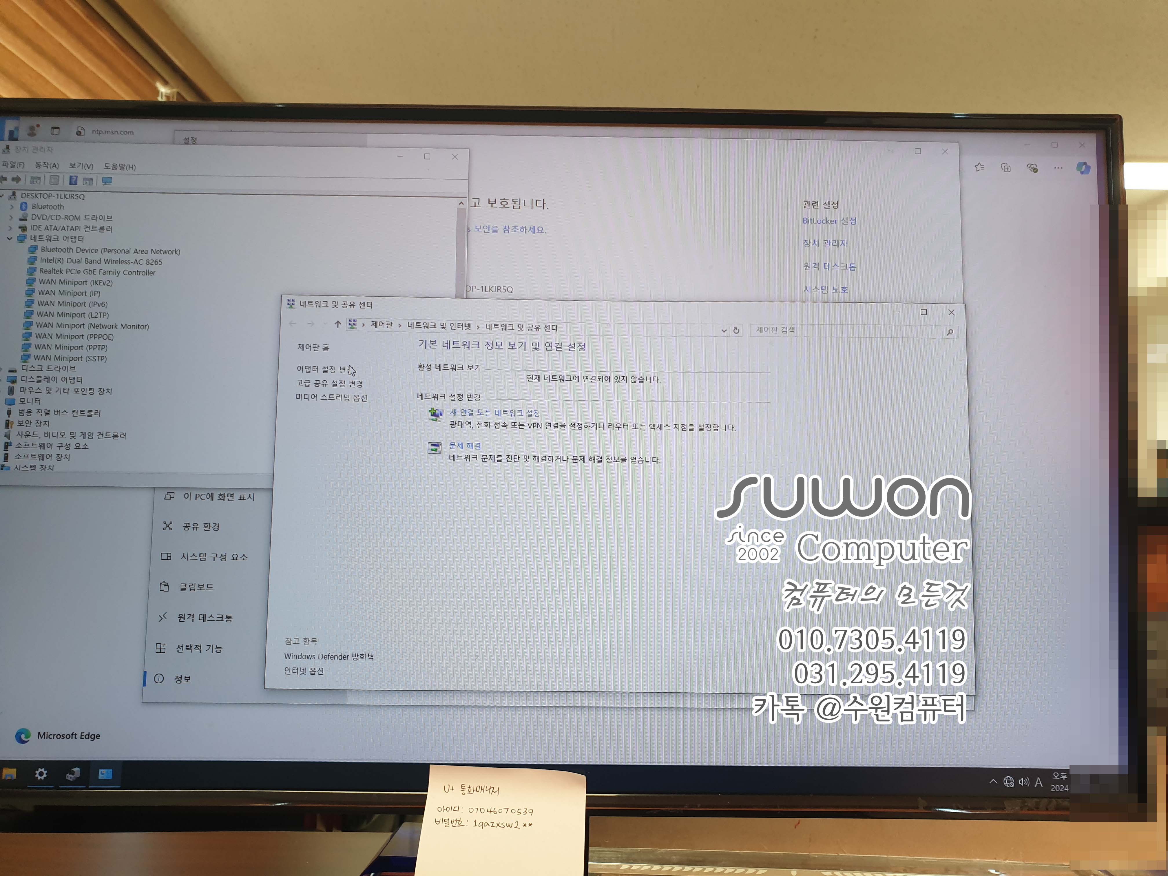 삼성 데스크탑..인터넷 연결이 안되네요