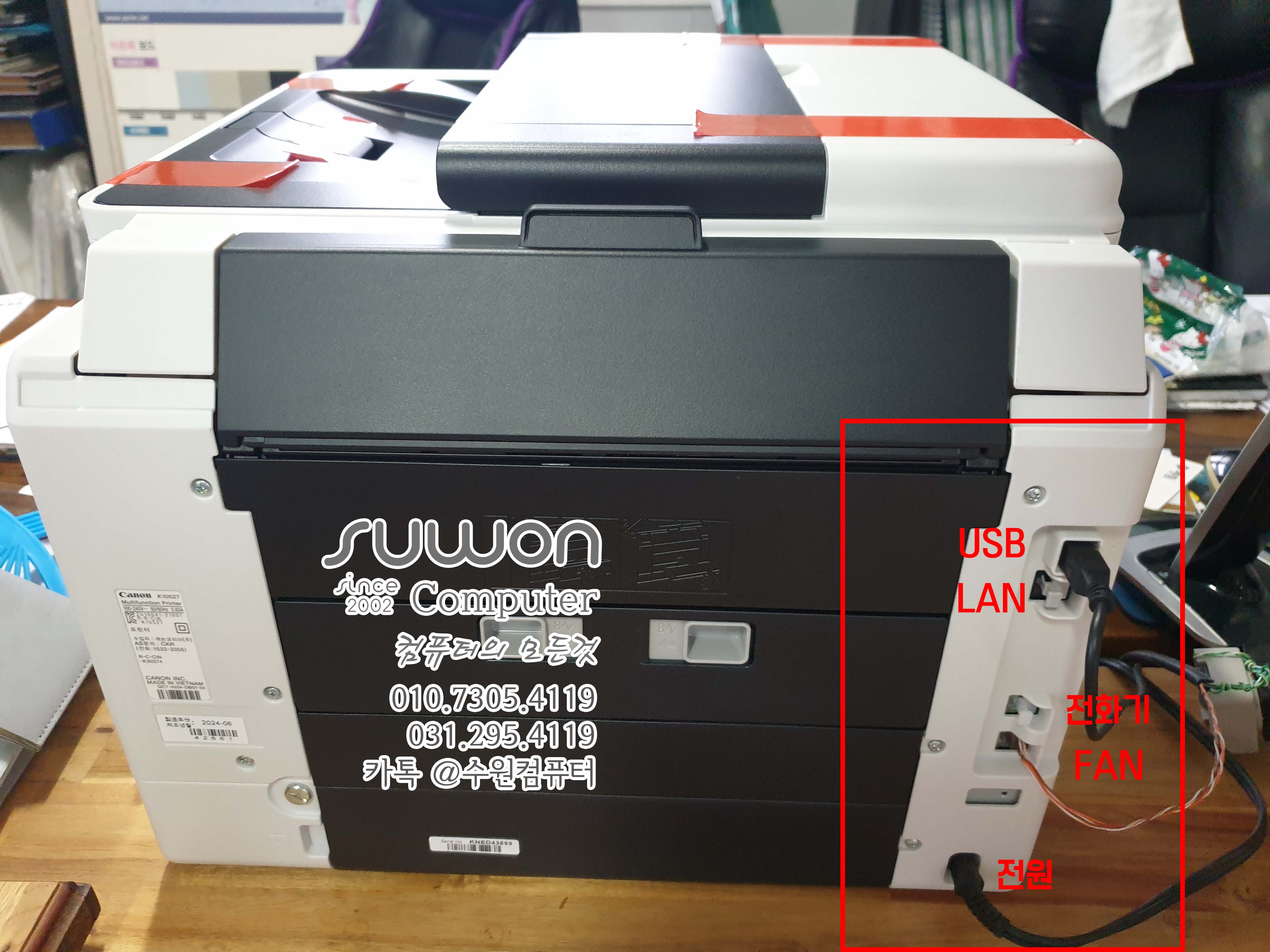 전원 / FAX / LAN / USB 등이 있고