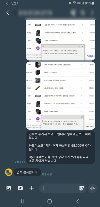 인텔 / AMD 제품 두가지 견적 보내드리고