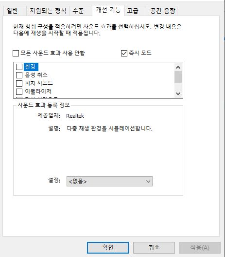 사운드 개선기능이 표시가 안되면 사운드카드 드라이버 버전을 낮춰보시고
