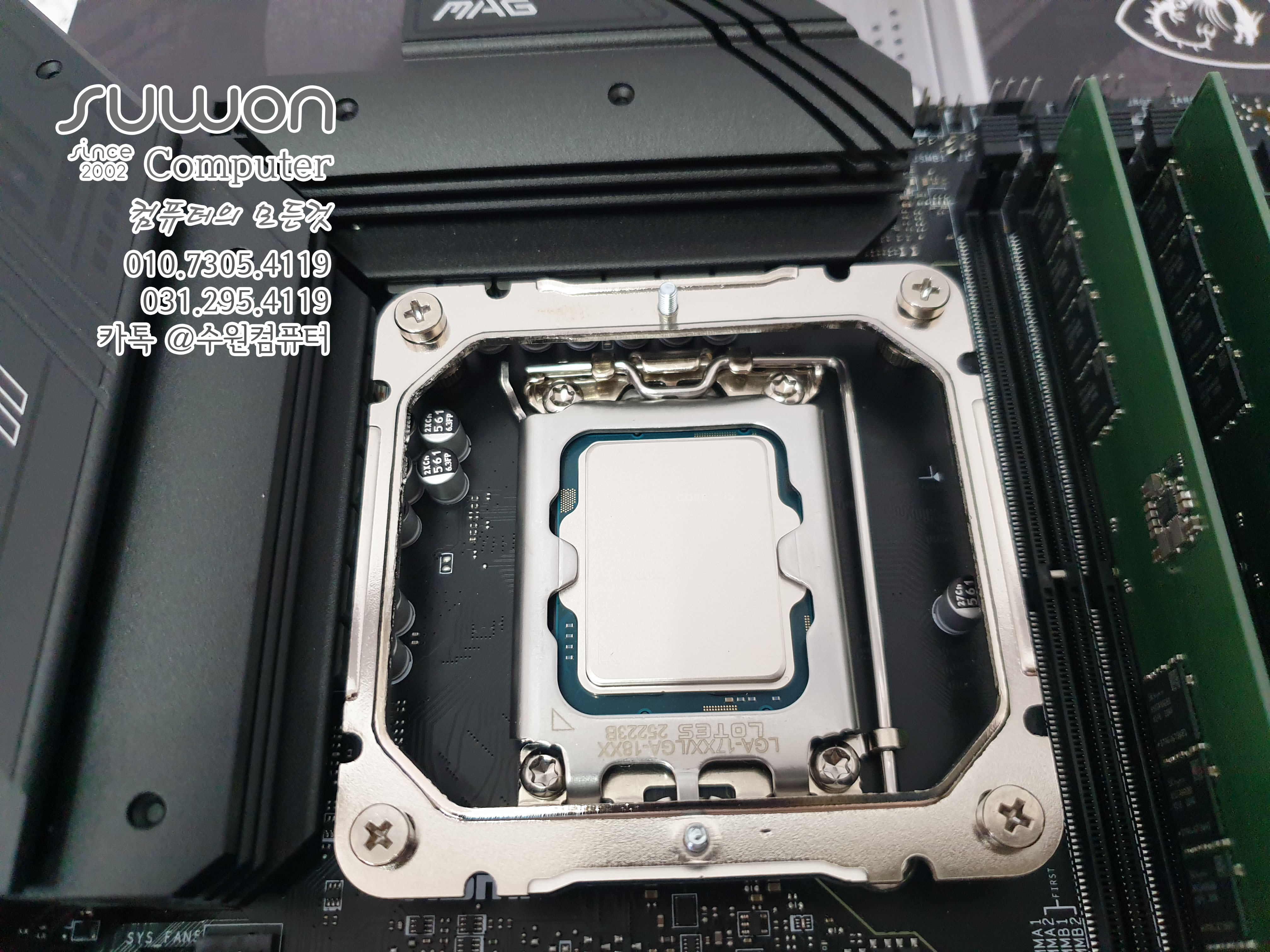 메인보드에 CPU / RAM /SSD /CPU쿨러 부품 조립