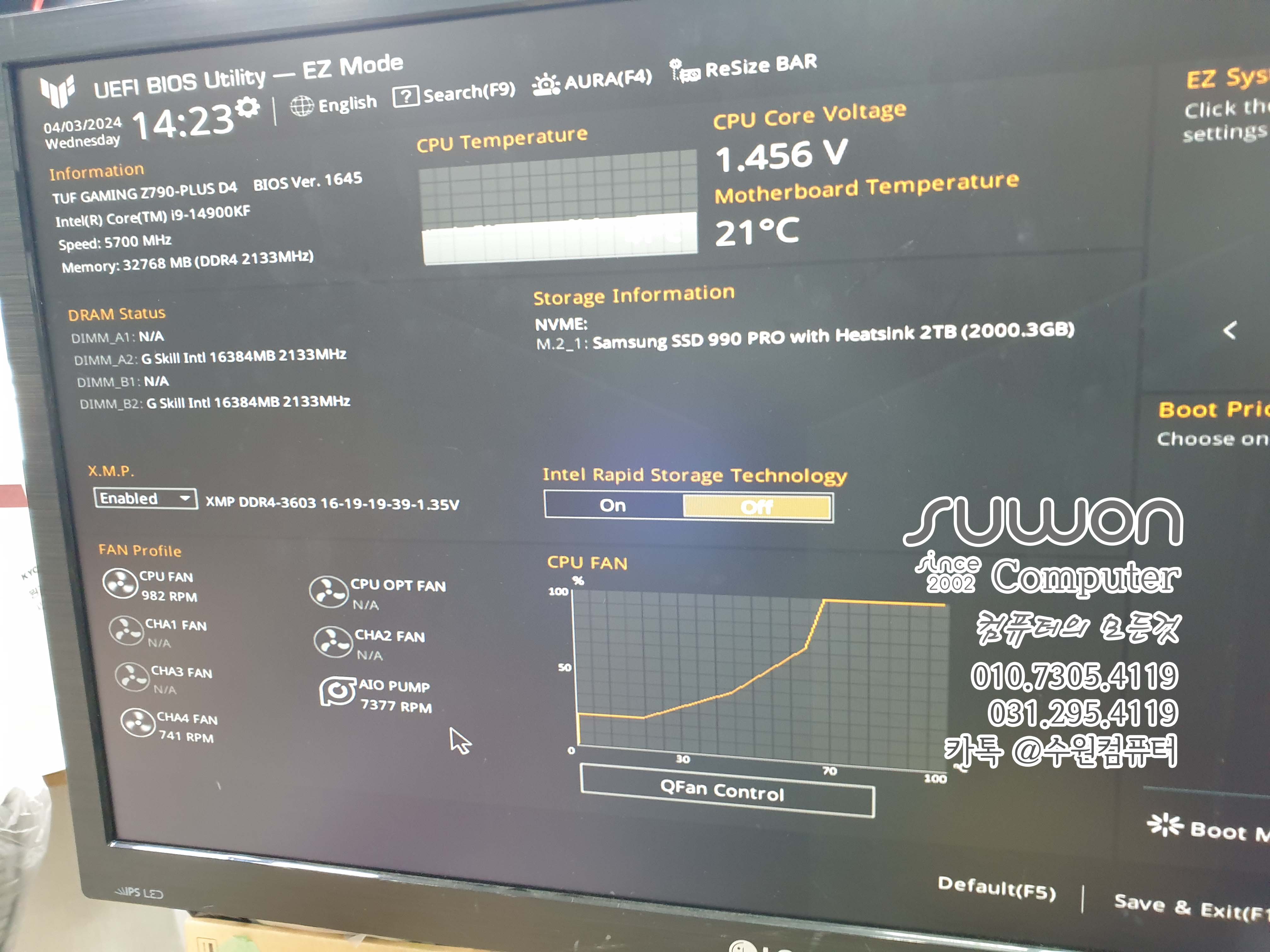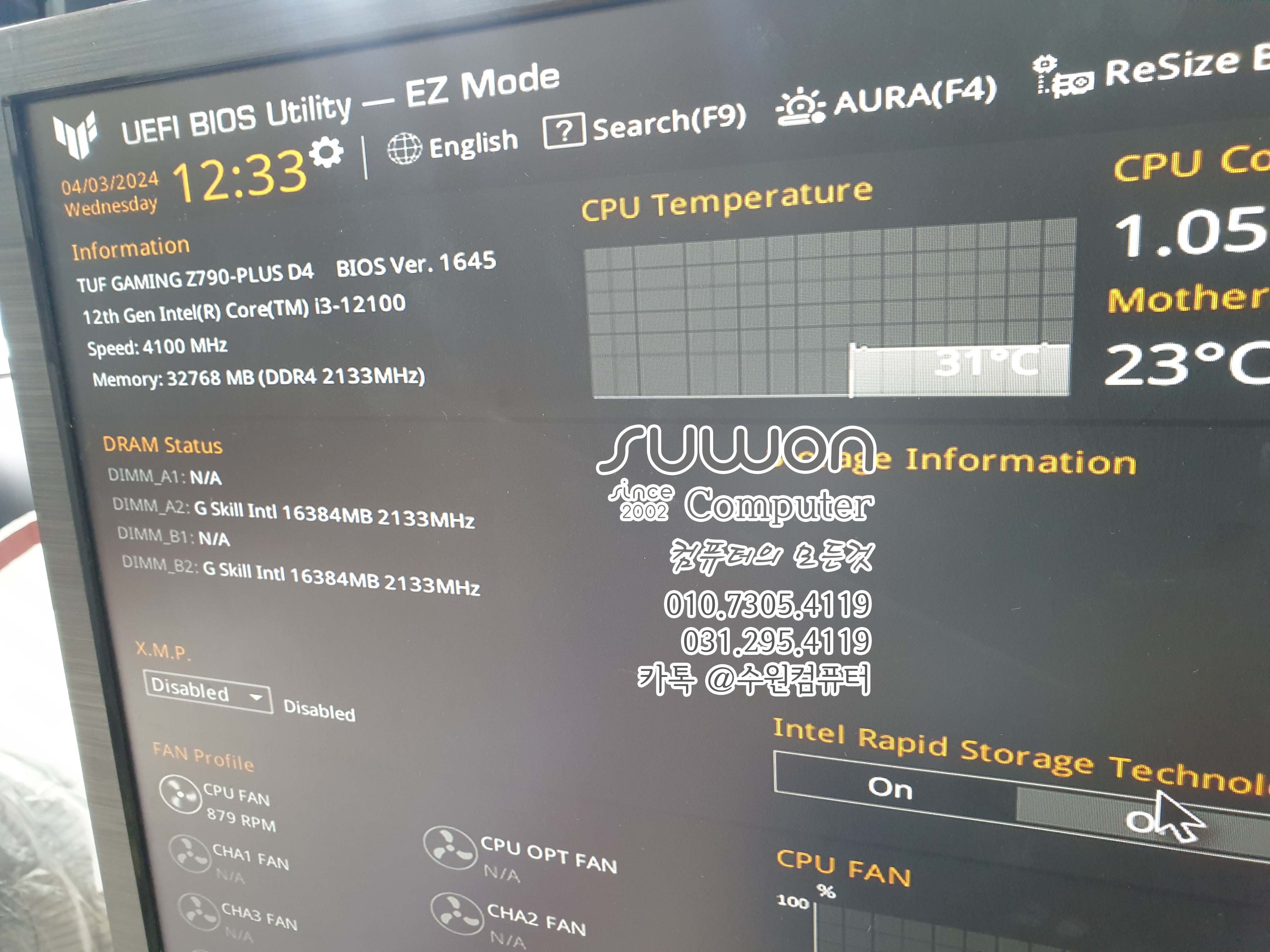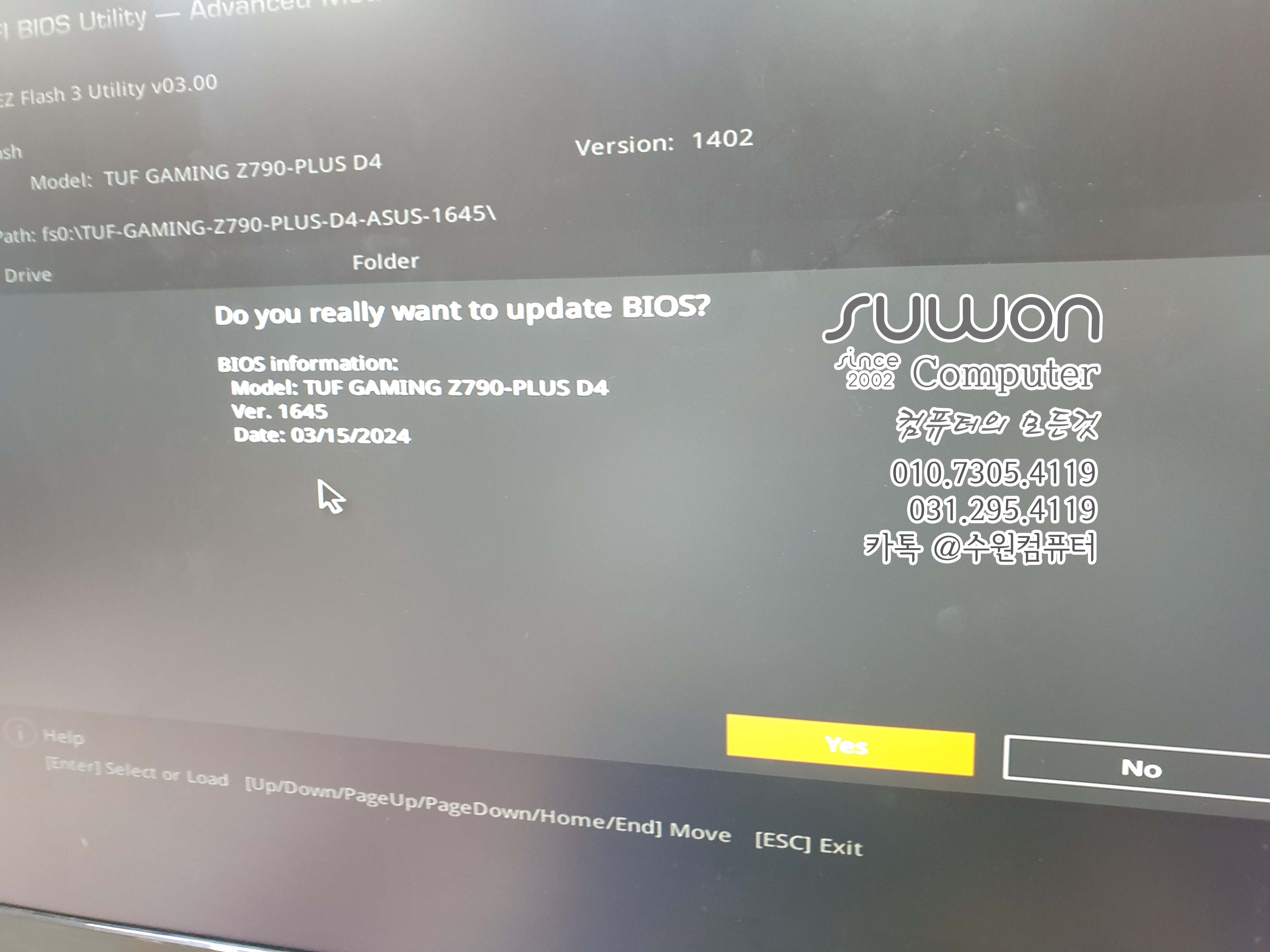 BIOS 1402 에서 1645 버전으로 업데이트~