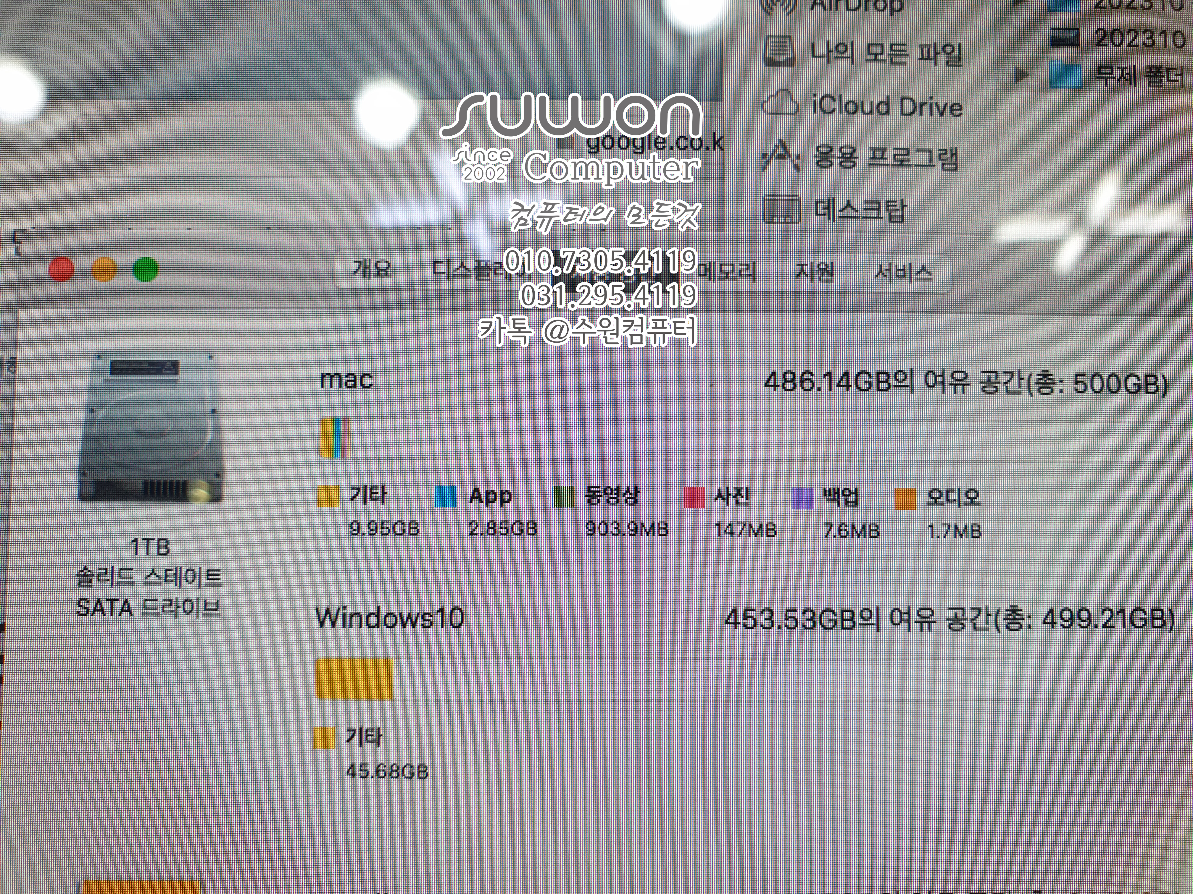 | 수원 아이맥 SSD / RAM 업그레이드_MAC OS 재설치_부트캠프 윈도우10 설치(A1312) (0) | 2023.12.11 |