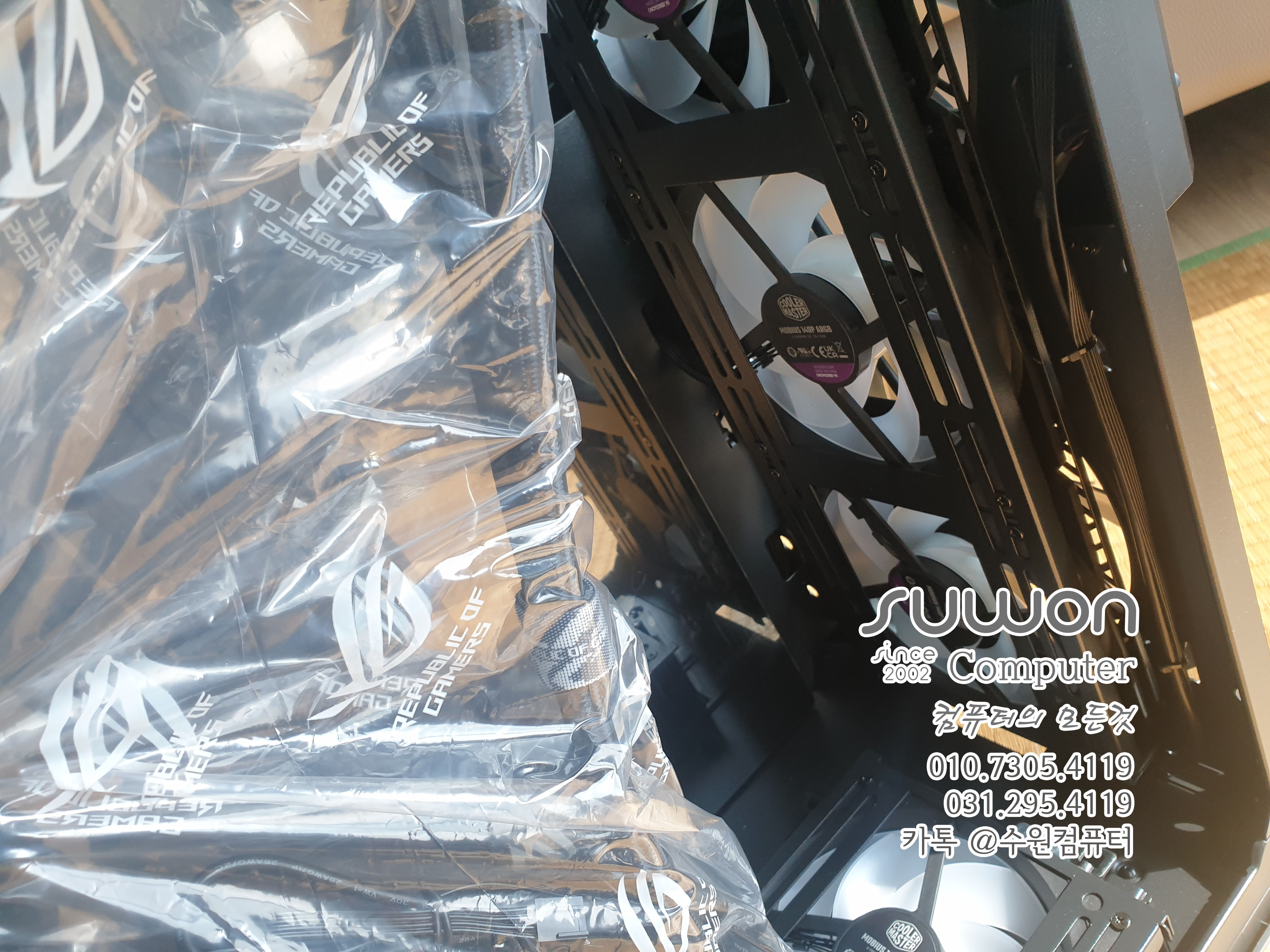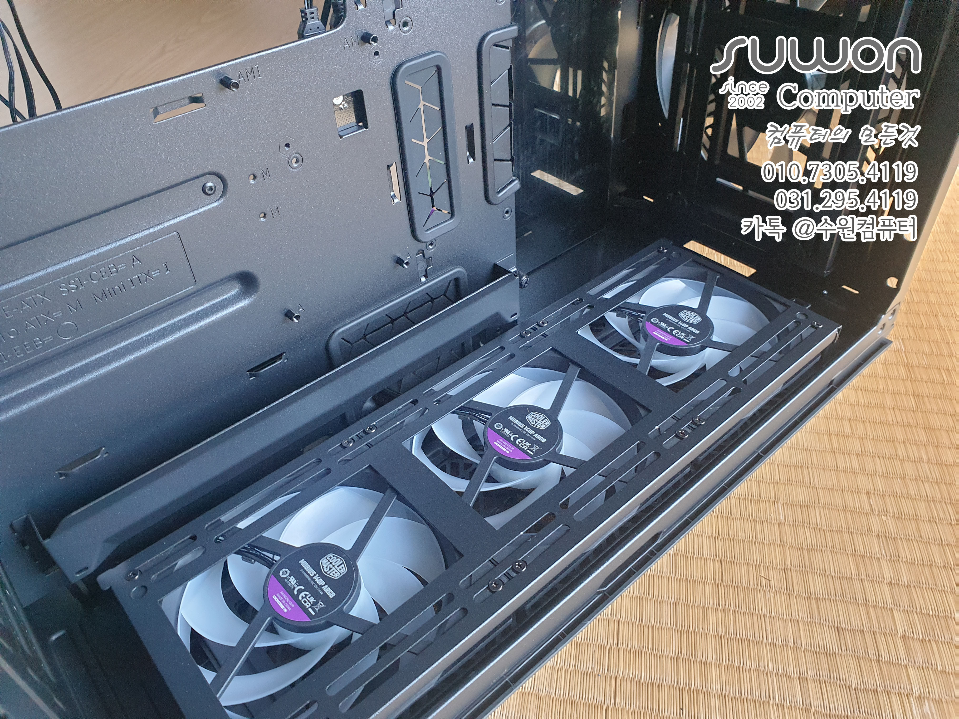 하단1개 후면2개 쿨러는 상단에 3개 설치하고