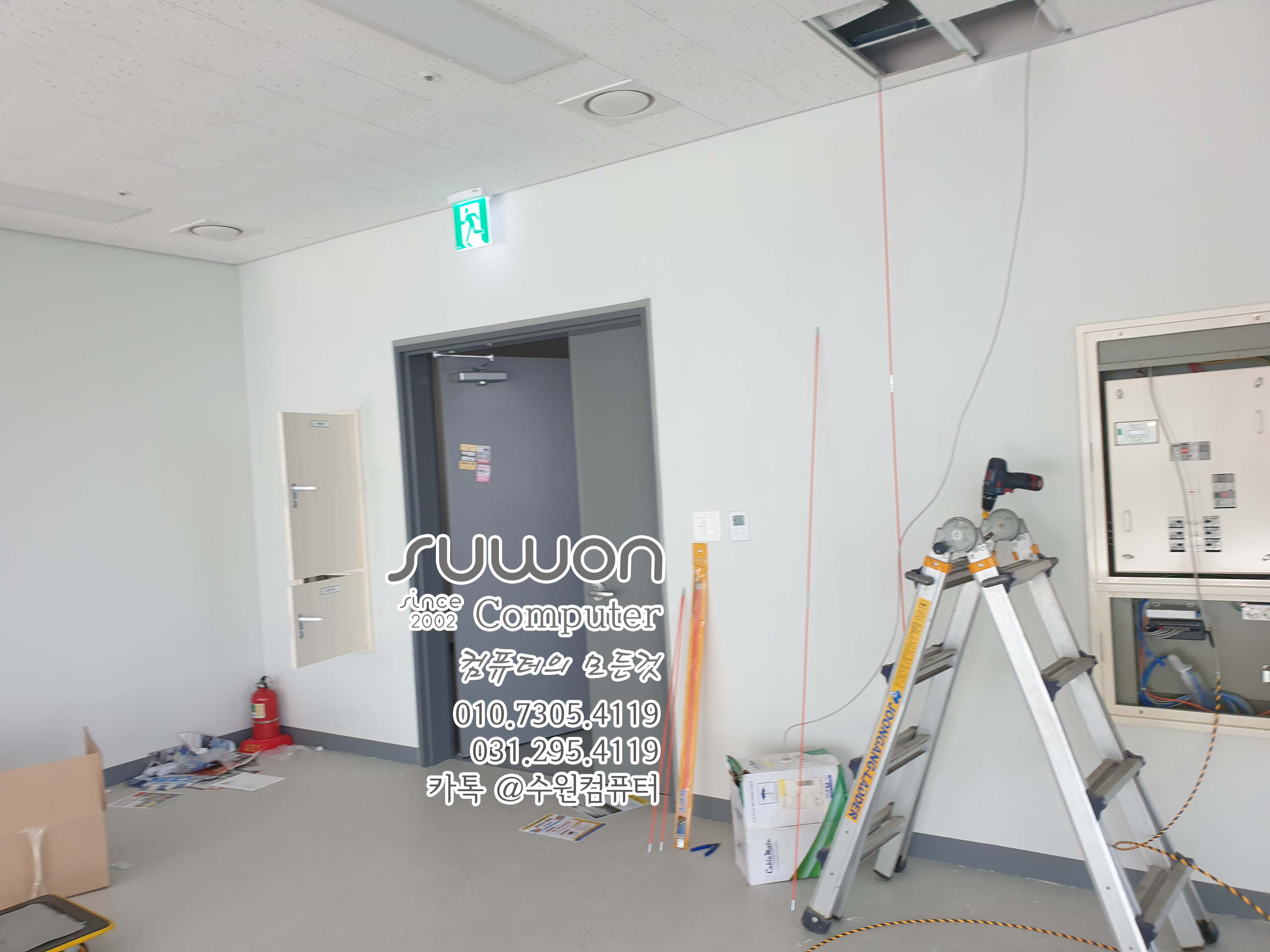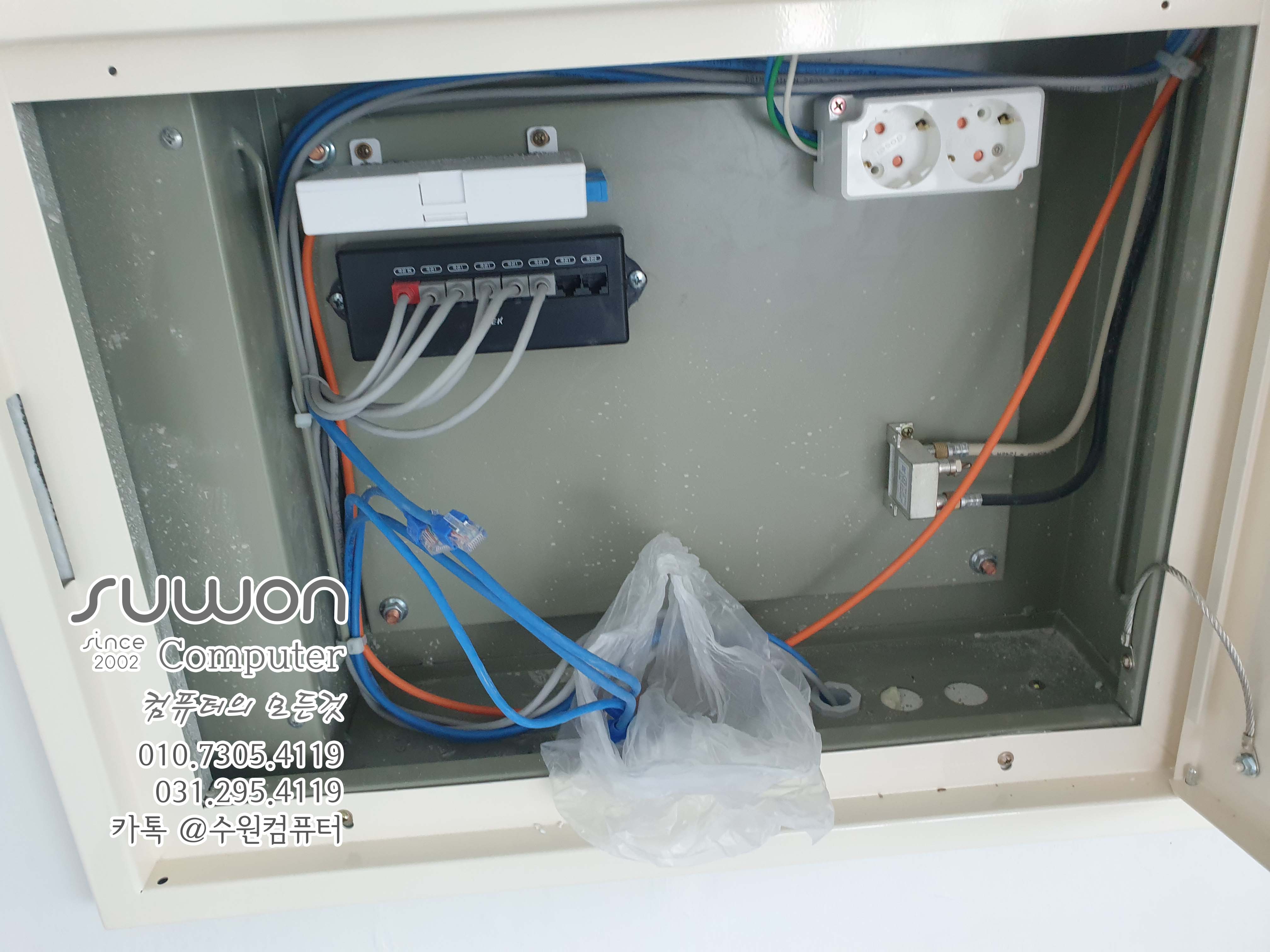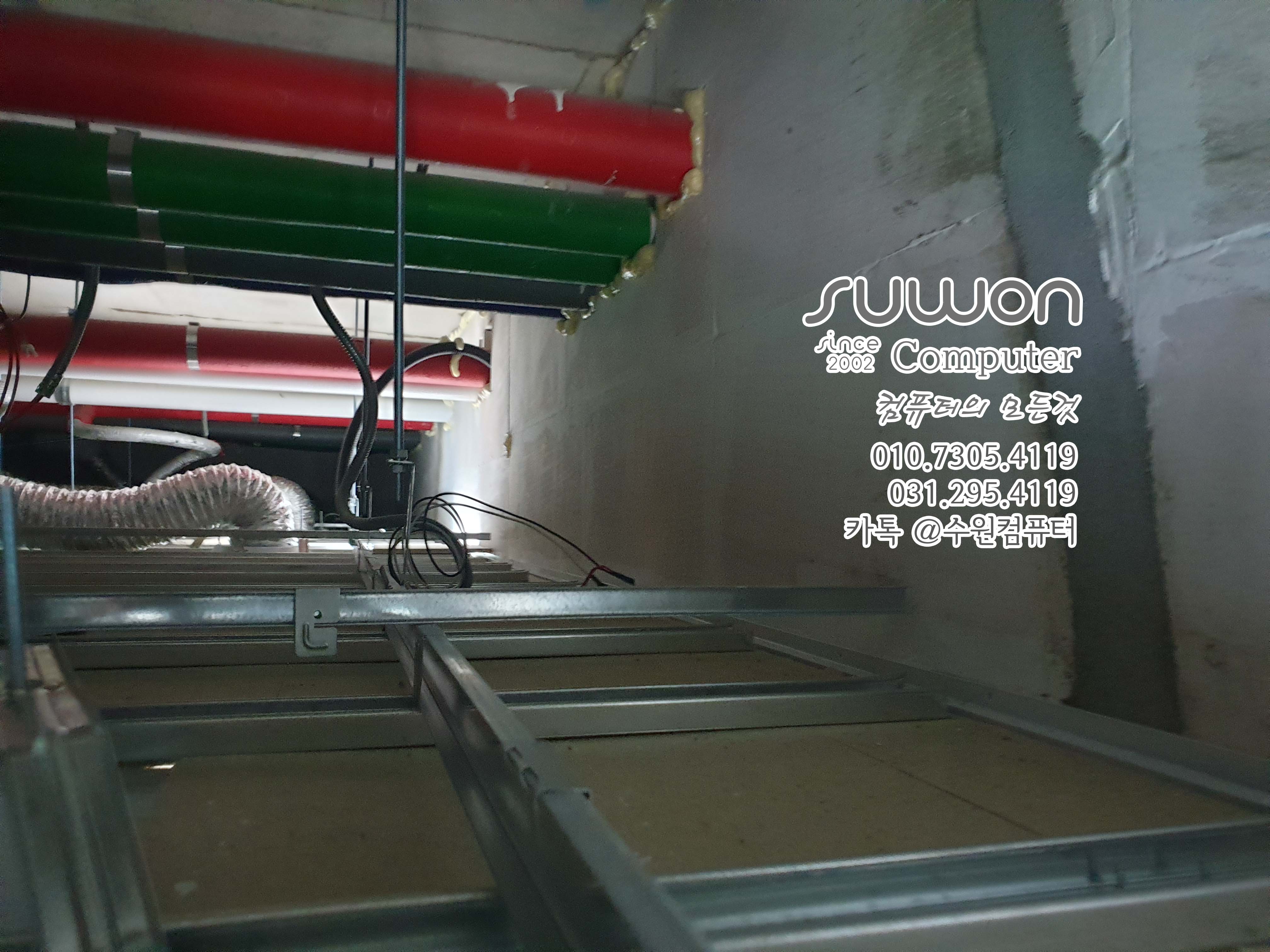 작업 후 메인박스 열어놓고 (사진) 담담자 전송 (인터넷 설치 때문에 꼭~ 체크 해야 합니다) 입구 전단지 등등 주변 정리 후 천장 네트워크 포설 마무리