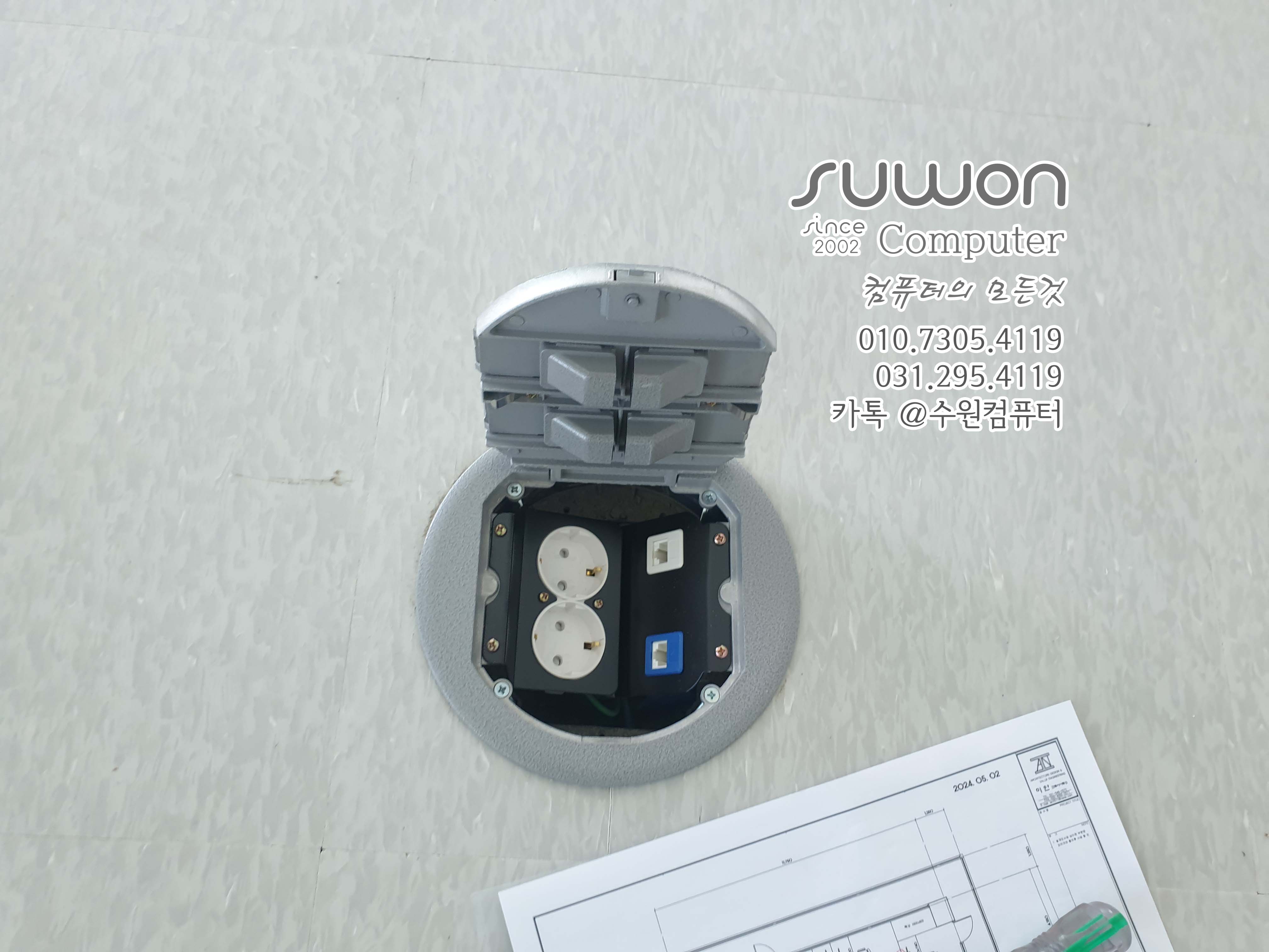 바닥 시스템박스 전원 2구 / 전화선1포트 / 인터넷선 1포트