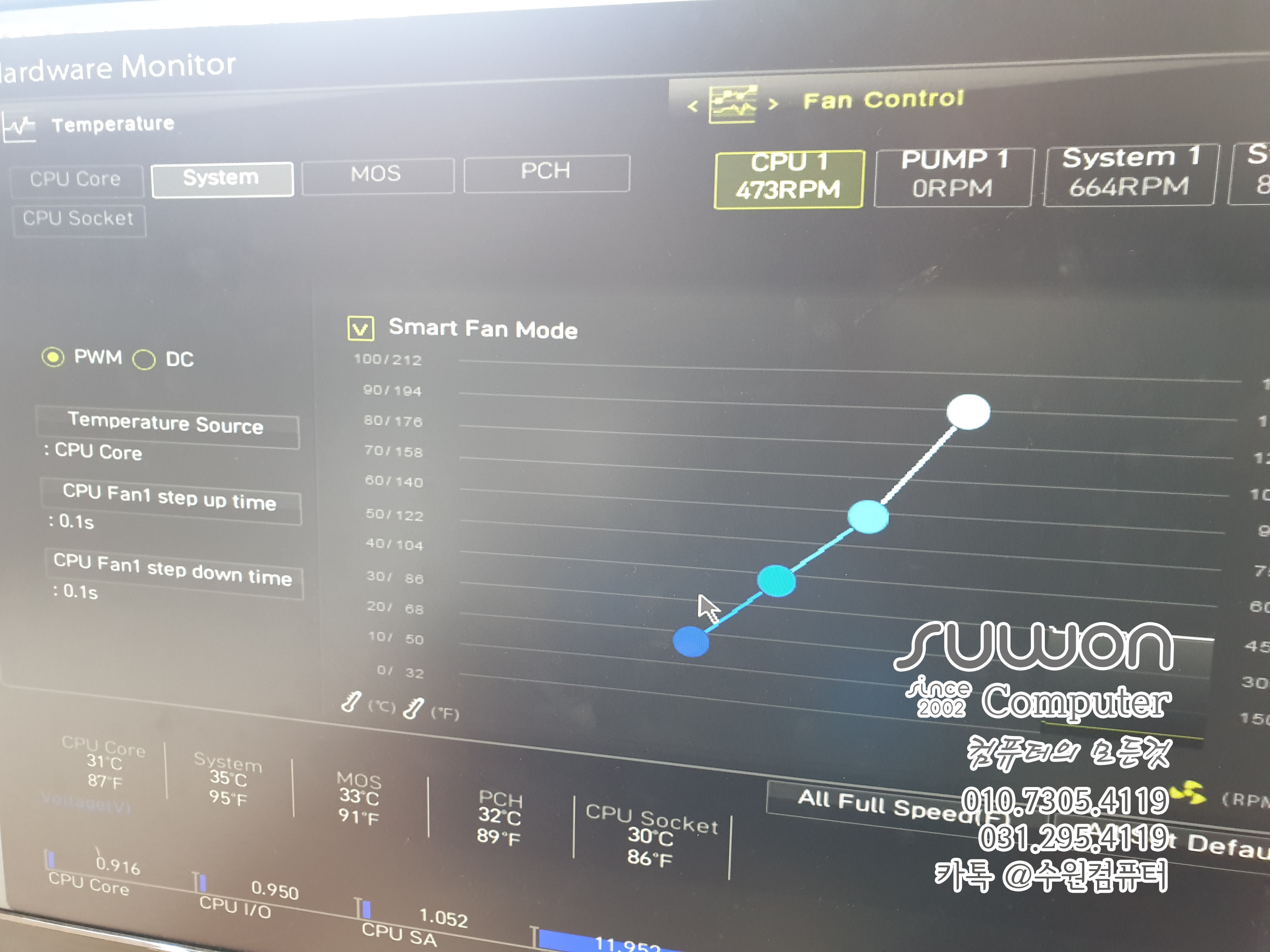 기본 바이오스 화면에서 30도 정도를 유지 하고