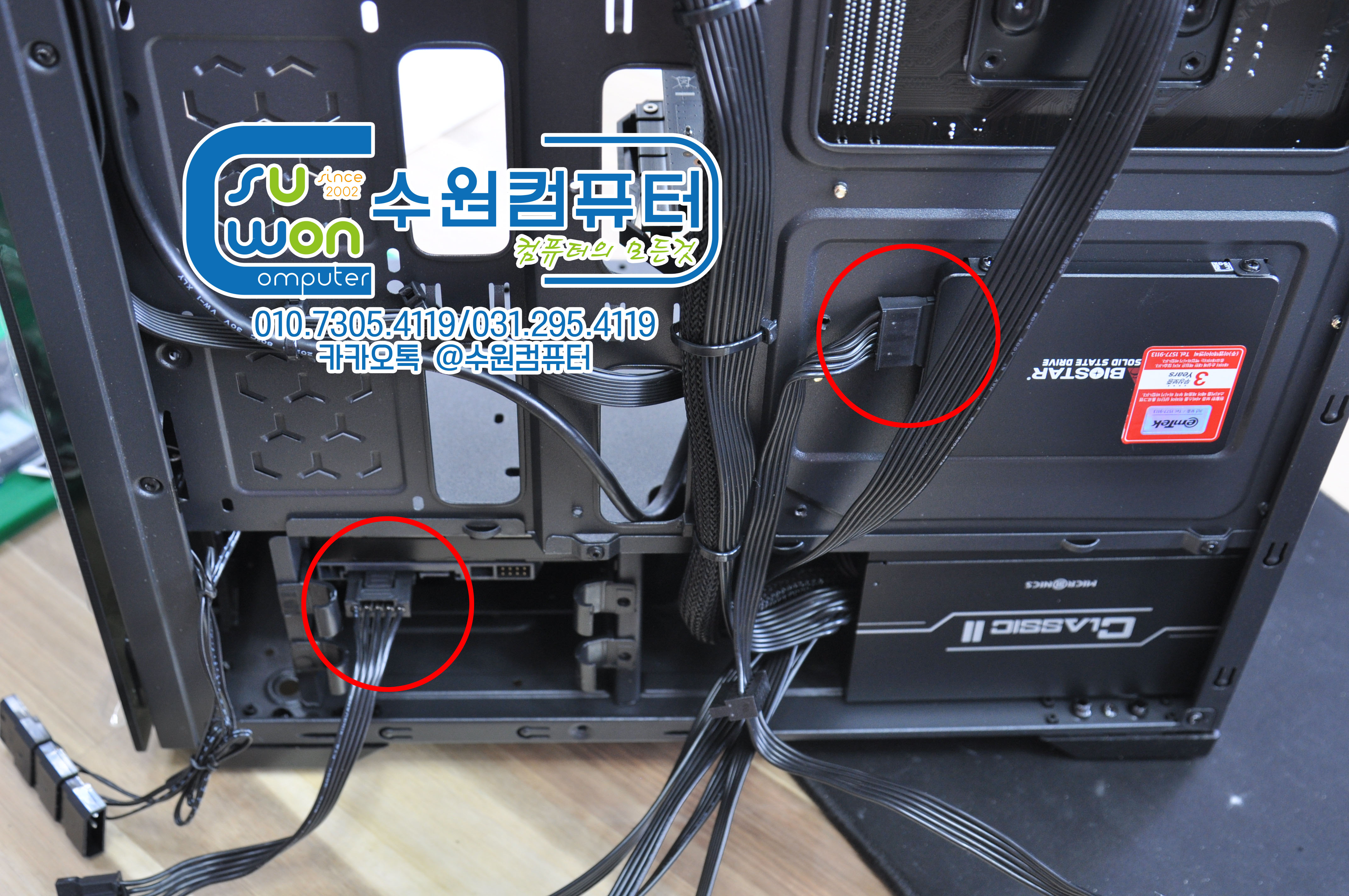 파워 장착 후 케이블을 정리 합니다