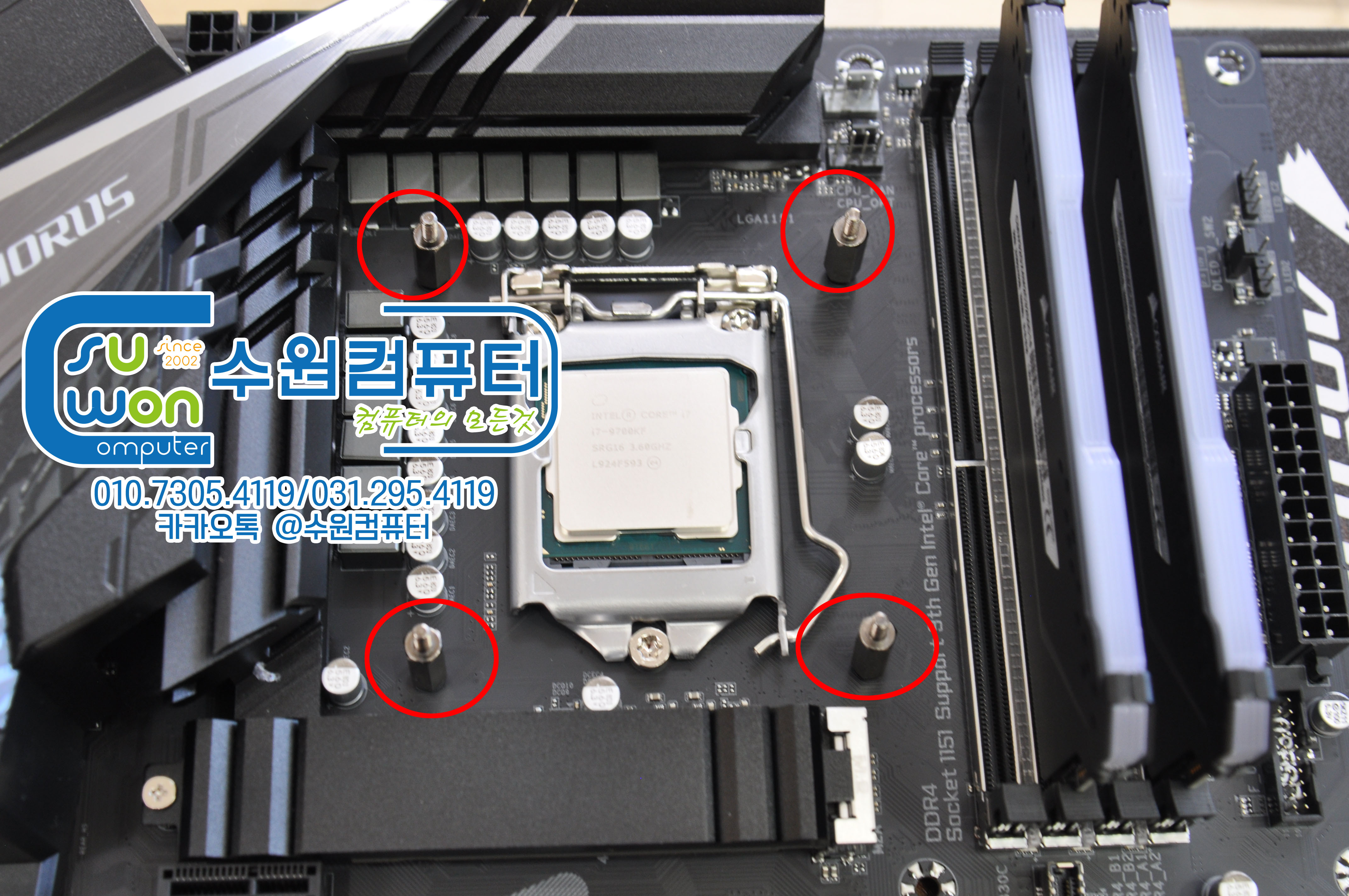 수랭쿨러를 장착하기전에 위치등을 미리 살펴 보셔야 합니다