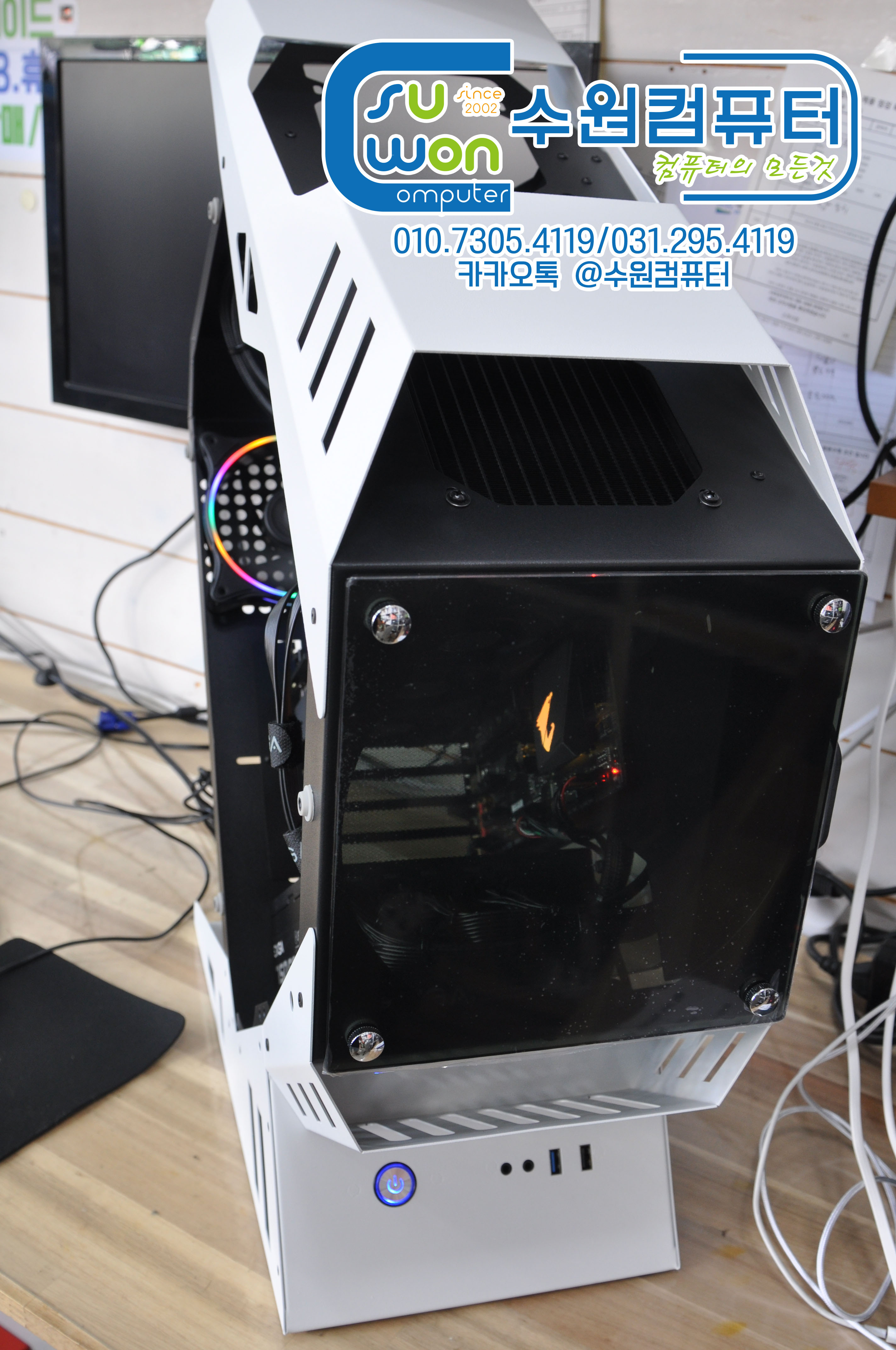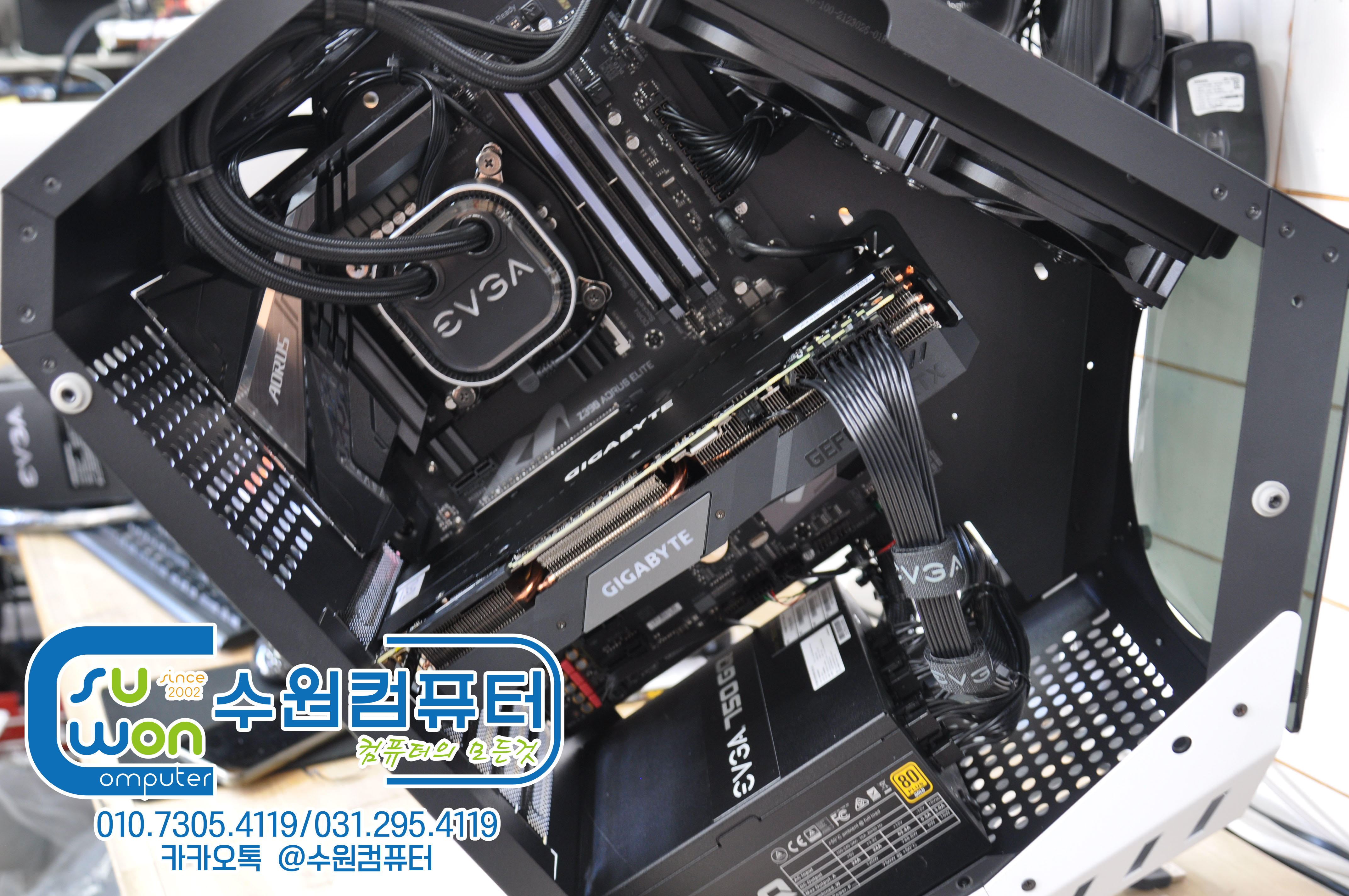 수원 율전동 배틀그라운드용 컴퓨터판매_i7-9700KF_EVGA 일체형 수냉쿨러_수원_컴퓨터부품수리판매업그레이드_3RSYS GT100 케이스