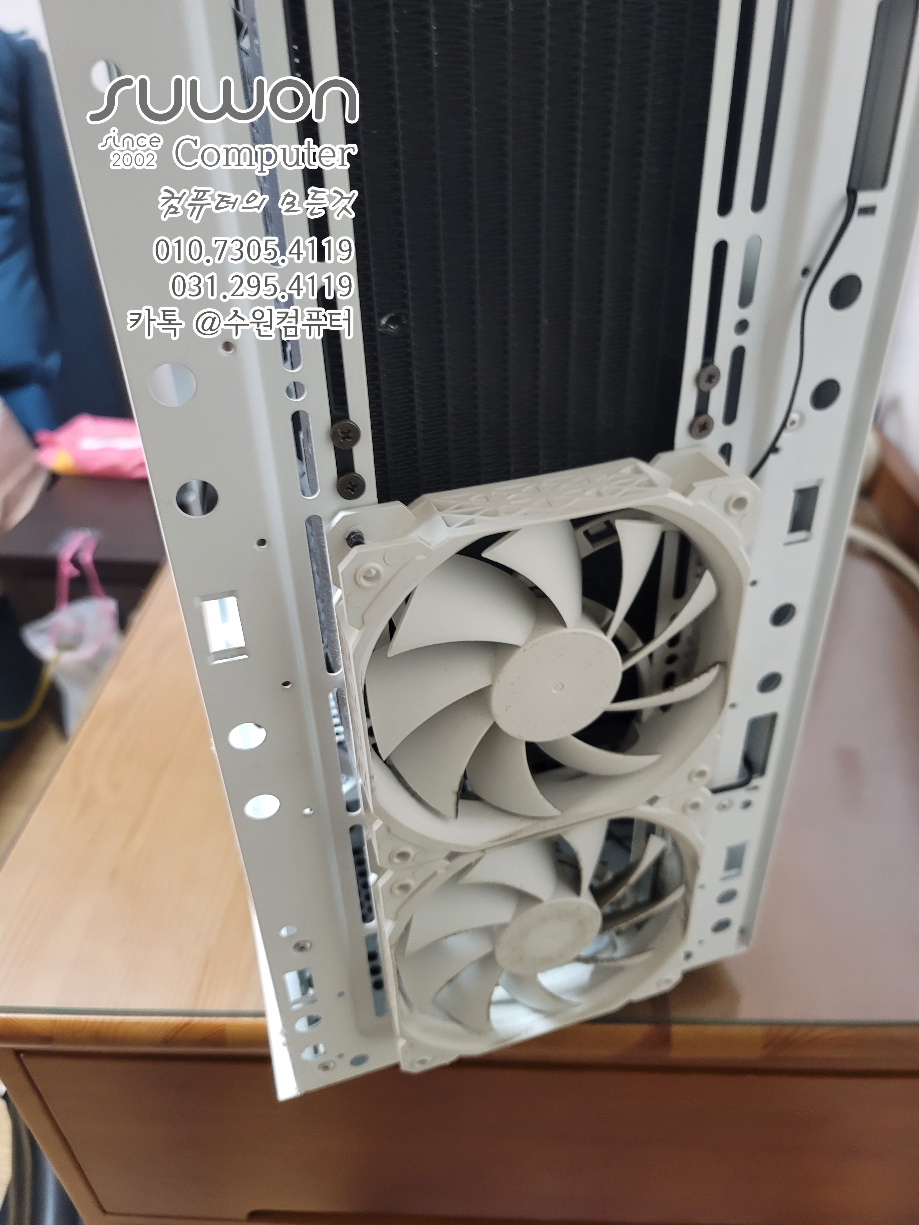 2열 수랭쿨러는 전면 안쪽에 장착 했고