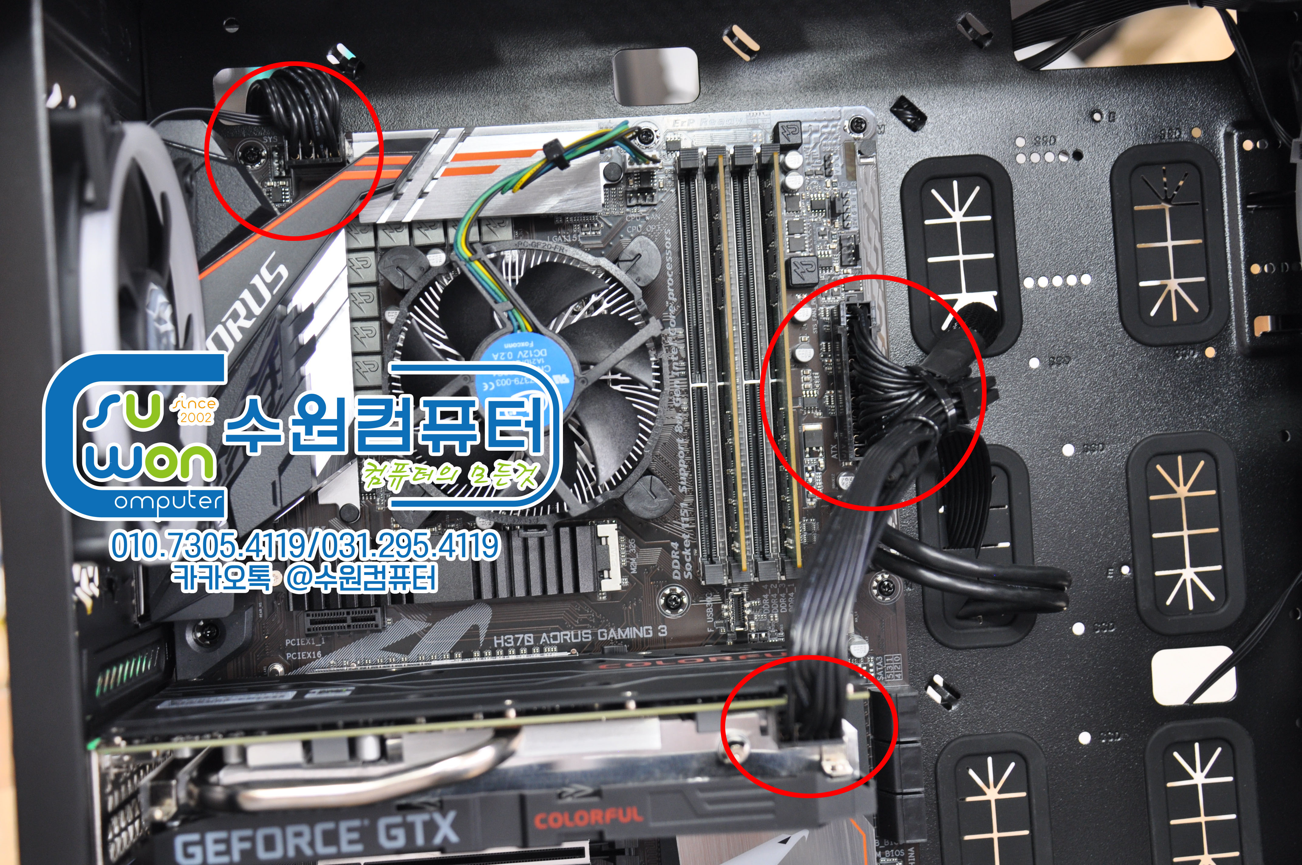 파워 장착후 메인보드 및 그래픽카드 전원 연결~!